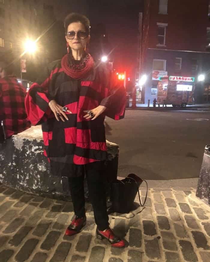 Diana, tout de rouge et noir vêtue, incarne parfaitement l’audace de ces associations inattendues.