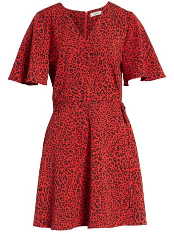 Le motif léopard traverse les saisons, et cette version sur fond rouge apporte une touche inattendue à la tendance. Voilà une mini-robe qui ne passe pas inaperçue.